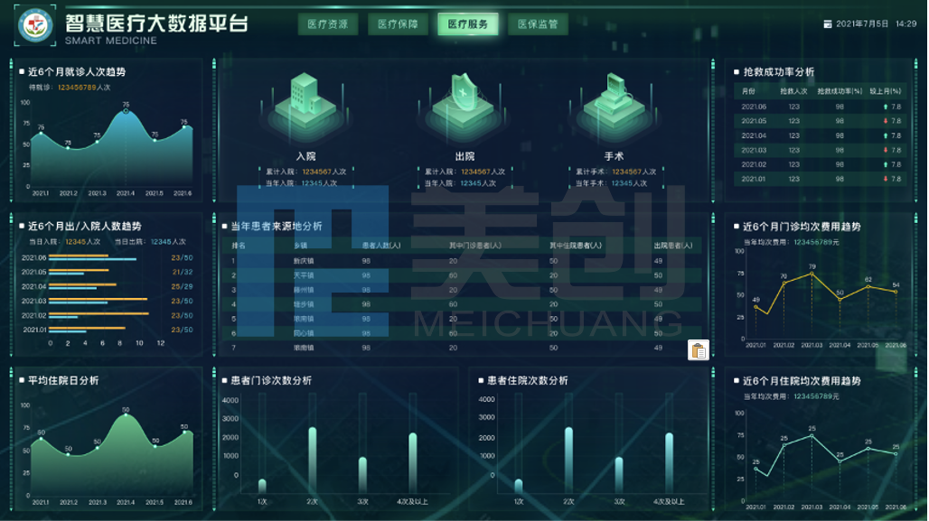 通過“醫療決策分析平臺”,為醫院管理者提供“一站式”決策支持信息服務,管理者能夠便捷、直觀、快速掌握醫院運營狀況。